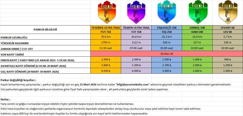 Koşu, 11 Nisan 2026 tarihinde yapılacaktır. Katılımcıların kısmi yeterlilik esasına göre, 3 saat içerisinde parkuru tamamlamaları gereklidir. Kısmi yeterlilik, katılımcıların karşılaşabilecekleri doğa koşullarında güvenli bir şekilde koşularına devam etmelerine olanak sağlayacak malzemeleri yanlarında taşımaları anlamına gelmektedir.
